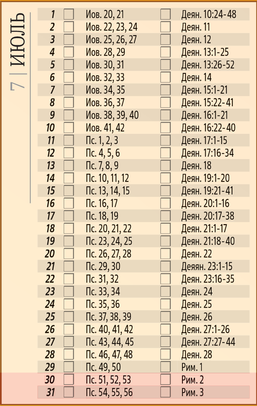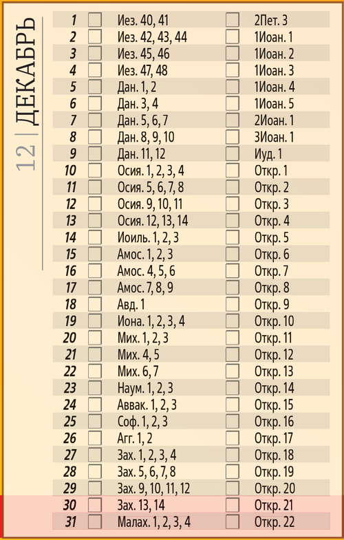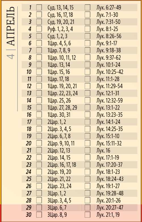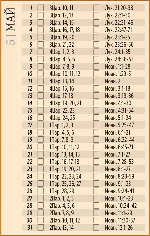 Параллельный план чтения Библии Ветхий и Новый Завет