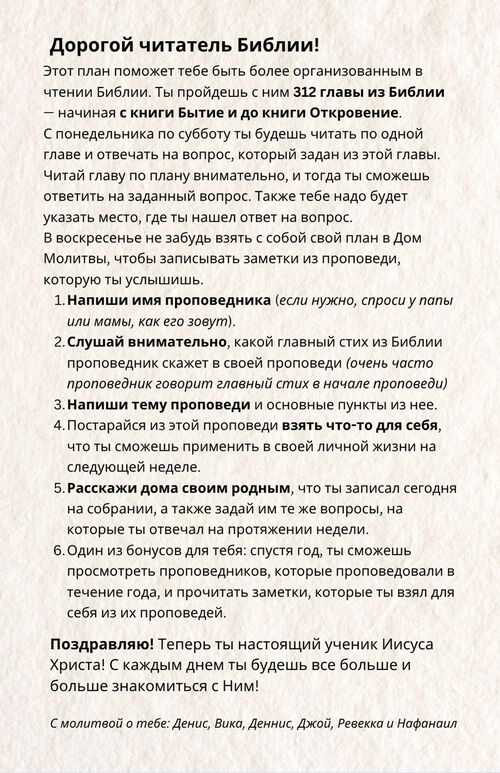Этот план поможет тебе быть более организованным в чтении Библии.