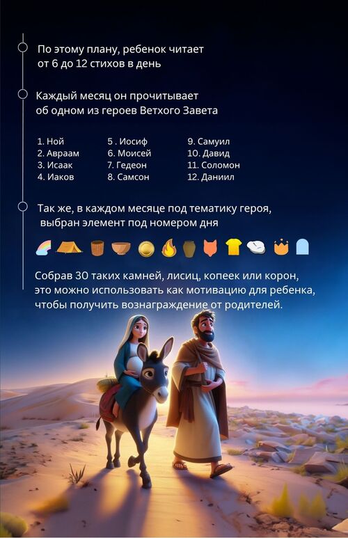 - Каждый первый день месяца он будет читать один Псалом, затем о одном из героев Ветхого Завета, и во второй половине месяца - из Нового Завета.