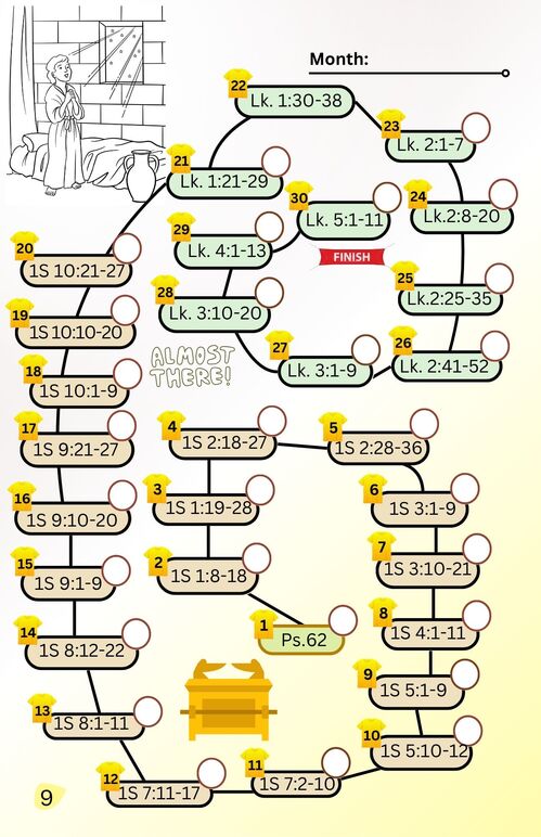Каждый первый день месяца, он будет читать один Псалом, потом об одном из героев Ветхого Завета,и в другой полинину месяца из Нового Завета.