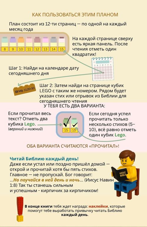 И самое важное: если ребёнок будет каждый день читать по этому плану, то за год он полностью прочитает весь Новый Завет.